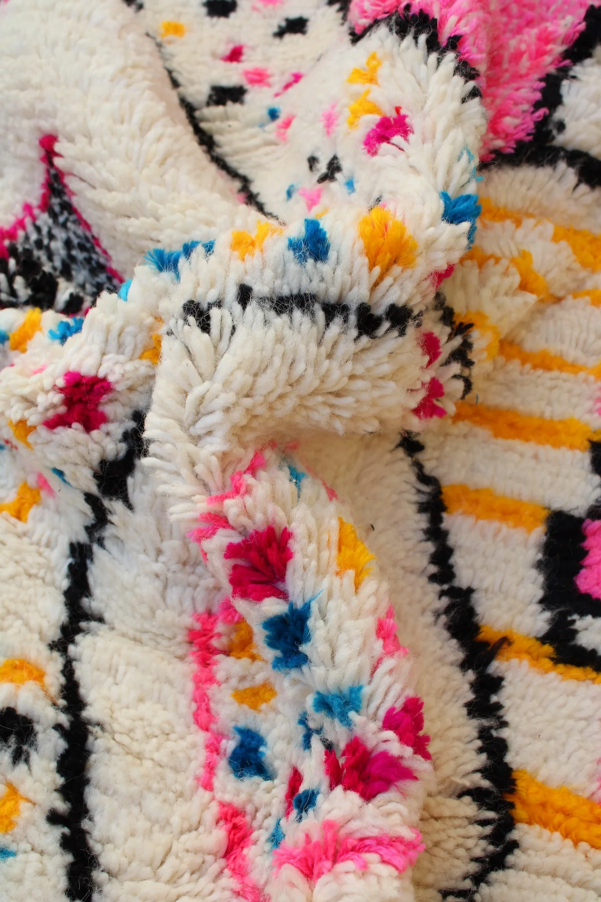 Like a meadow in springtime, this Azilal rug uses a joyful confetti of color and bold shapes to bring unrestrained happiness and character to your home.
