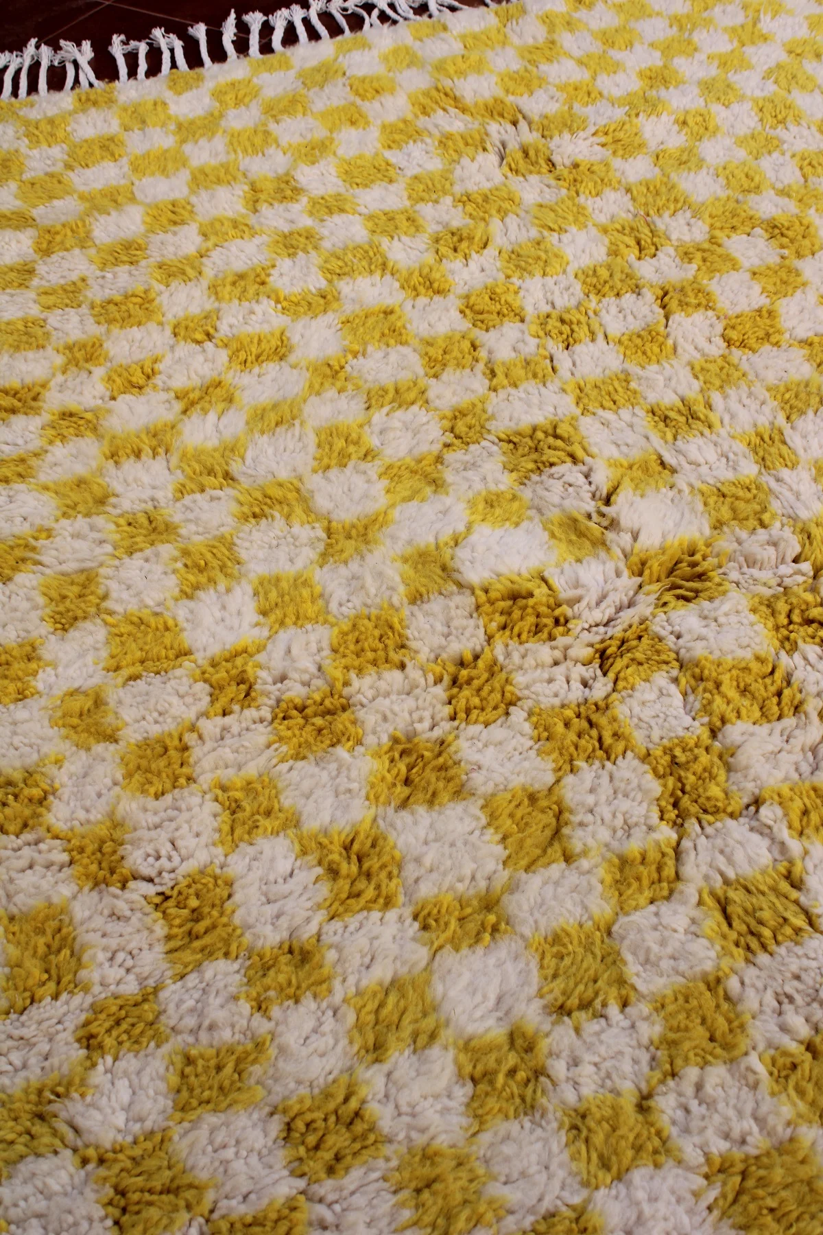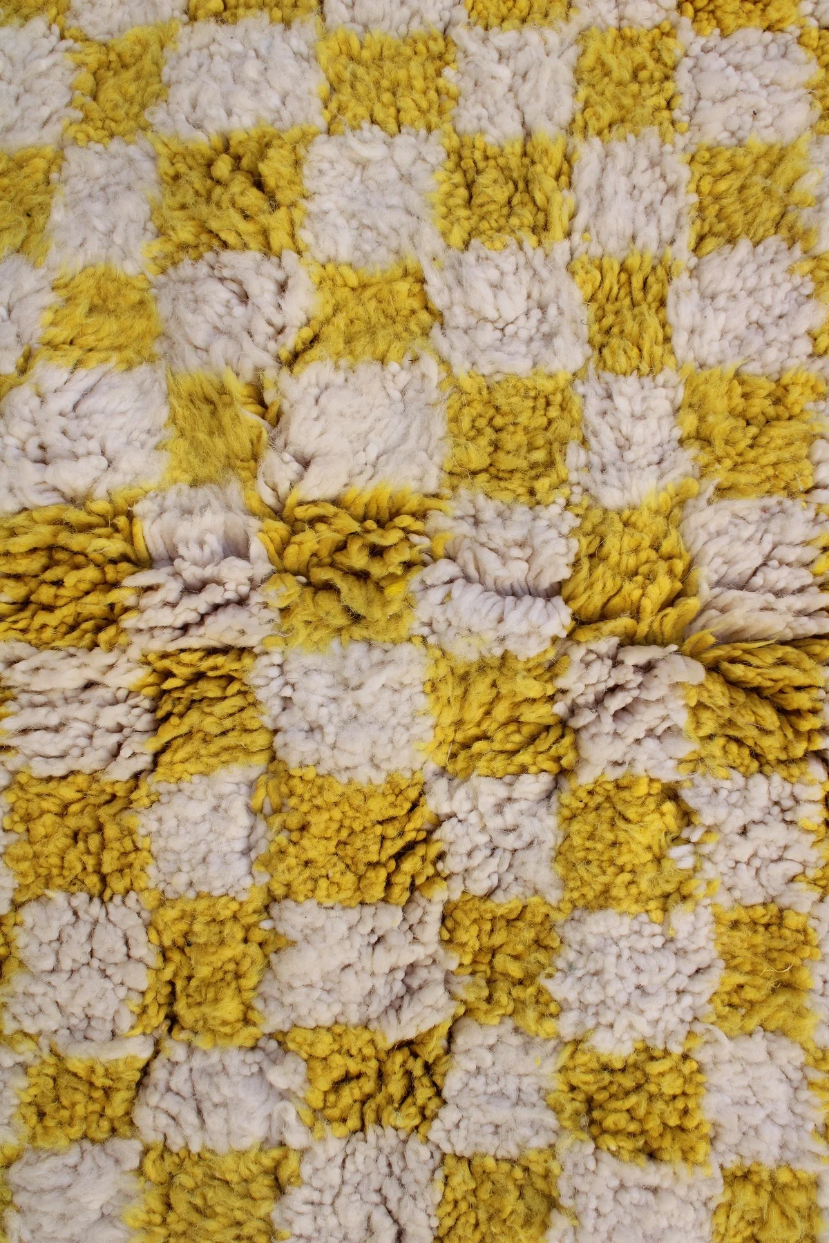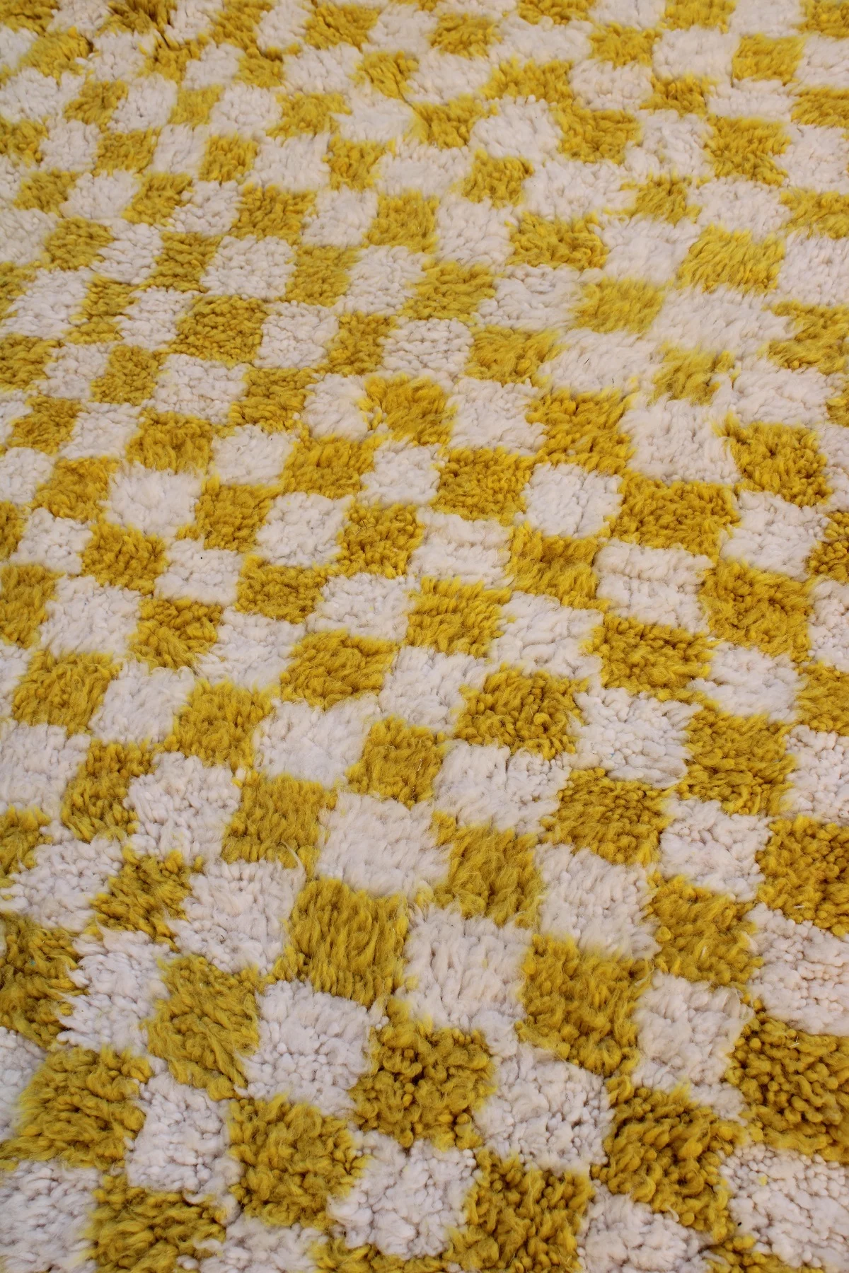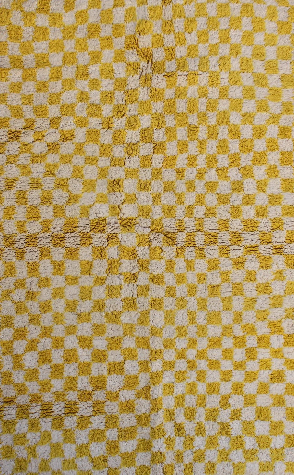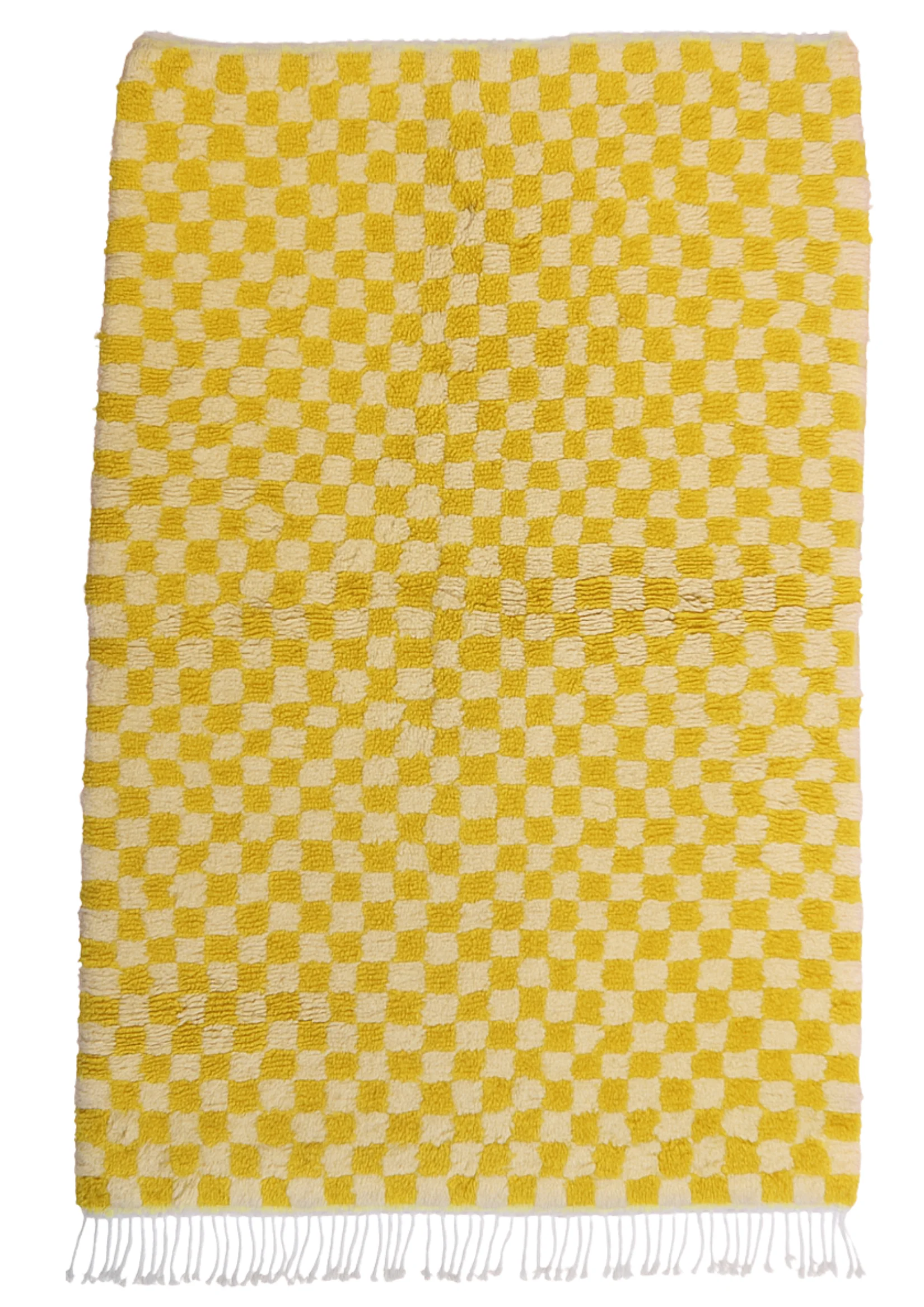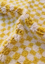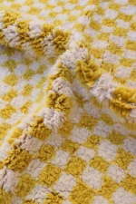 Awaken your space with ‘Fajr,’ a Beni Ourain rug featuring a bold yellow and ivory checkerboard. A cheerful, modern interpretation of classic comfort.