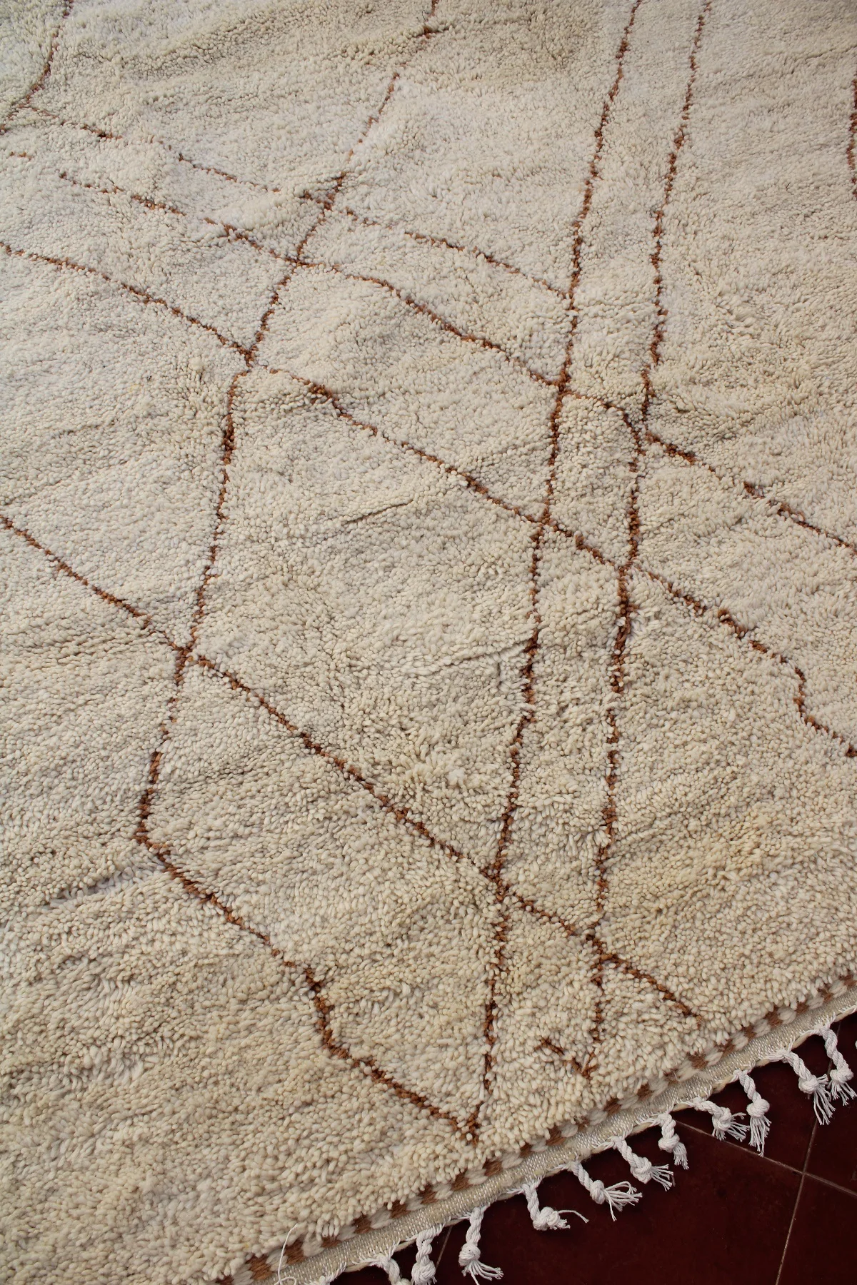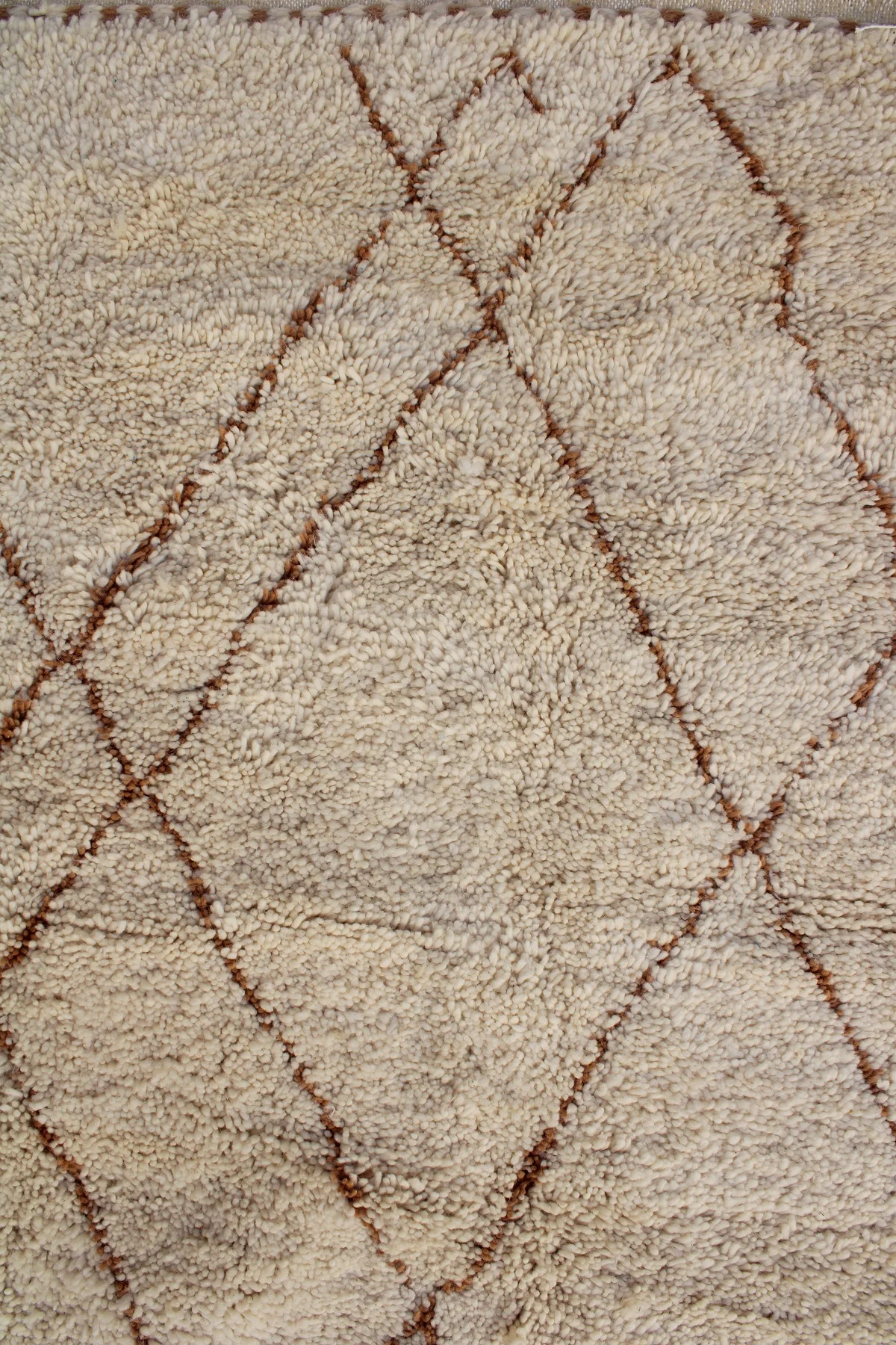 A gentle etching of light brown lines on plush ivory wool, this Beni Ourain rug offers a soft, elegant take on classic patterns, bringing serenity and warmth.