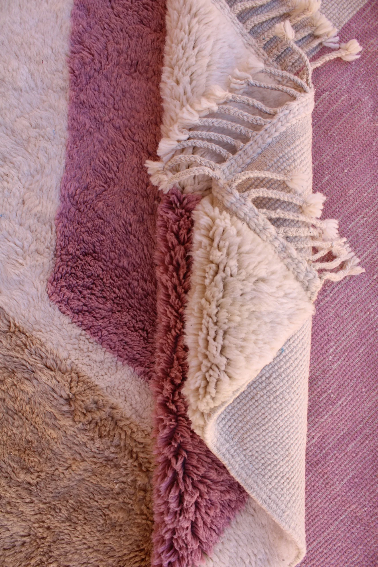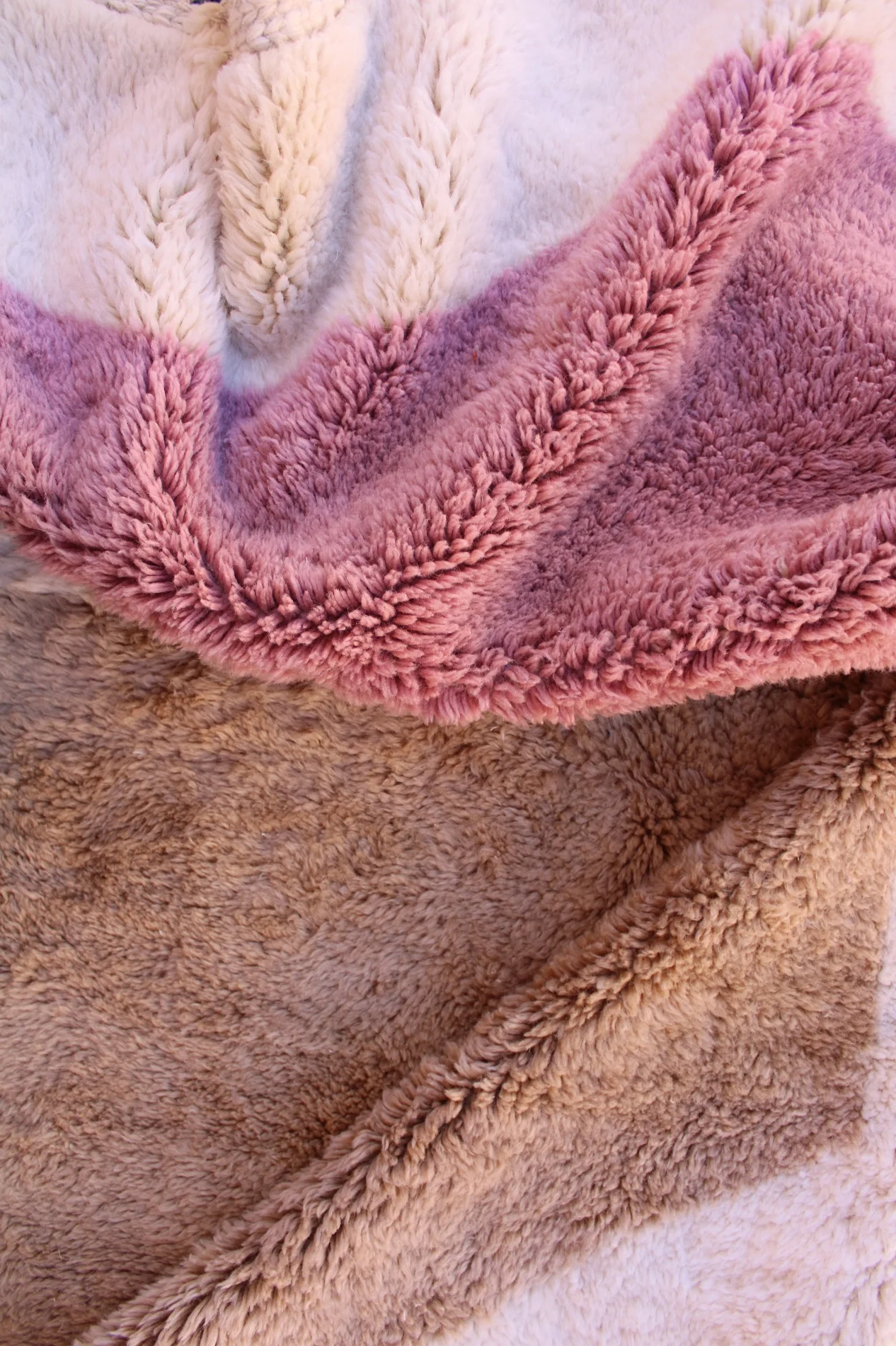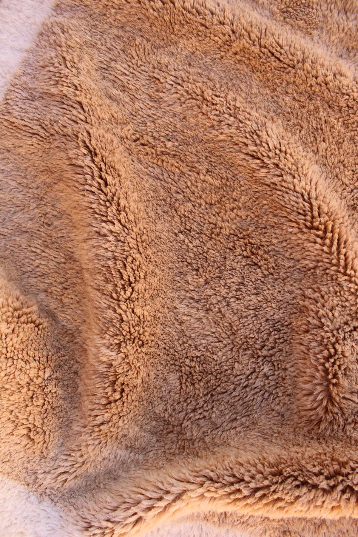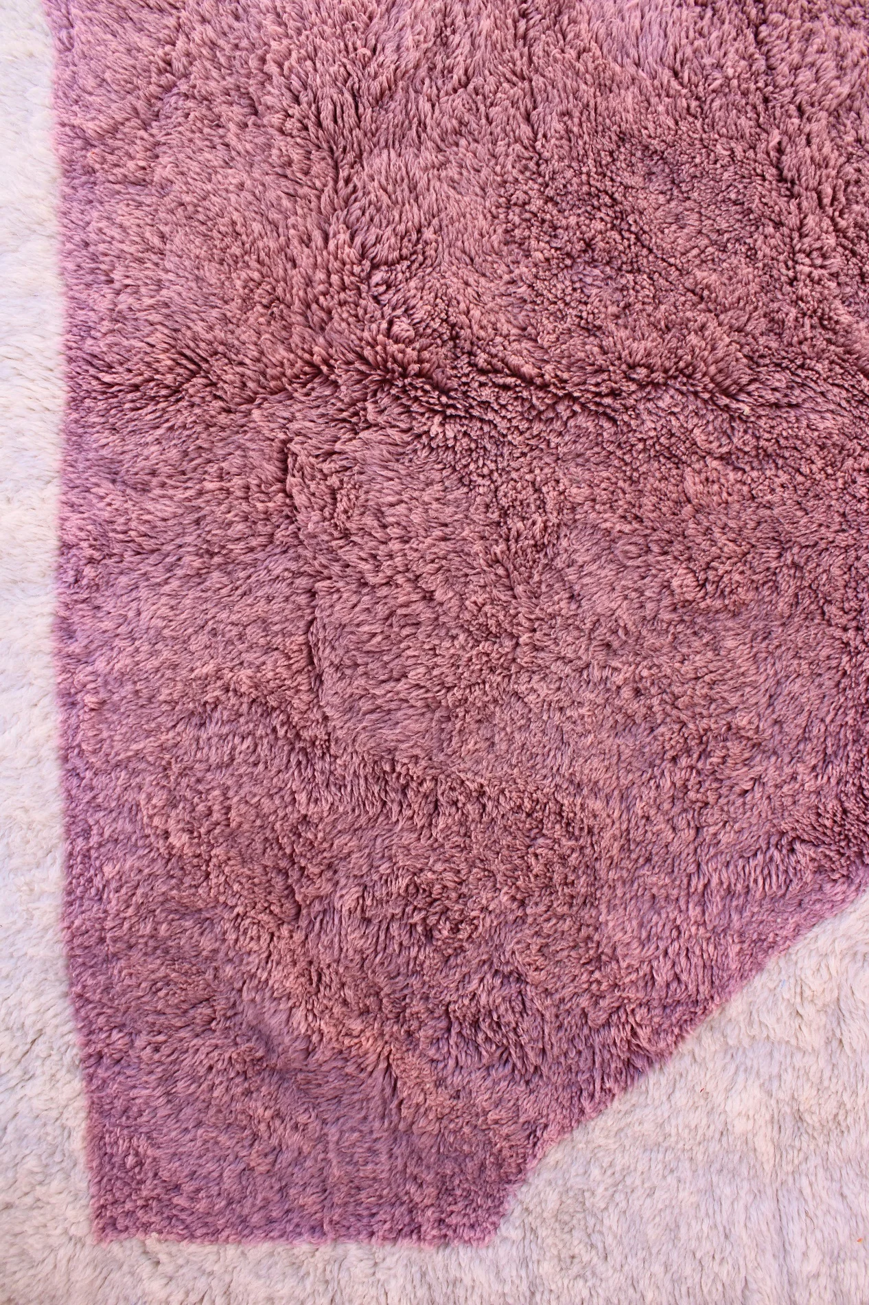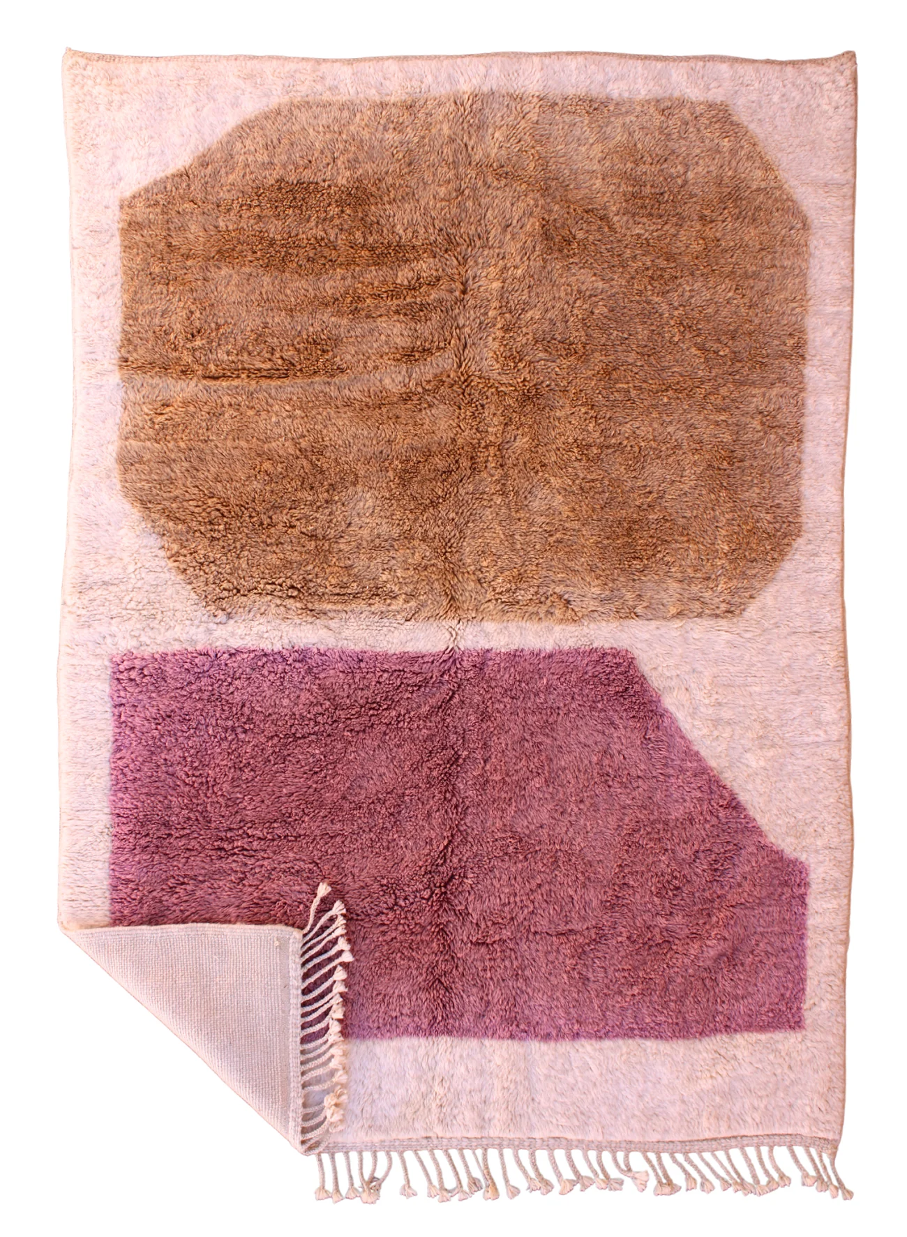 Named ‘Talwit,’ meaning ‘calm’ or ‘peace’ in Amazigh, this Mrirt rug is a luxurious canvas of soft, organic abstraction. Large, flowing blocks of rich, warm brown and deep, muted mauve float upon a supremely plush, creamy wool base. The absence of traditional patterns allows the unparalleled softness and dense pile of Mrirt wool to take center stage, creating a truly sensory experience. This piece offers a modern, artful serenity, designed for ultimate comfort and sophisticated style.