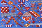A breathtaking visual encyclopedia of Amazigh symbols woven on a vibrant blue field, this Taznakht tapestry tells generations of profound cultural stories.